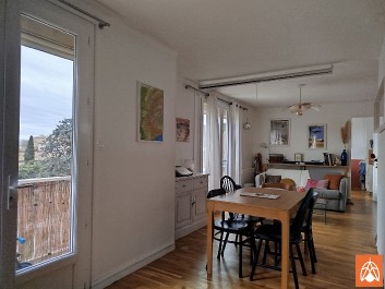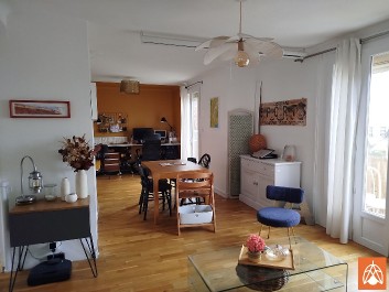 Rénové récemment , il se compose d'un hall d'entrée ,d'une cuisine indépendante aménagée et équipée récente, d'un séjour double exposé sud de 32 m² avec 2 grandes baies vitrées ouvrant sur 2 petites avancées avec gardes corps , deux chambres et une salle d'eau avec grande fenêtre et un WC.